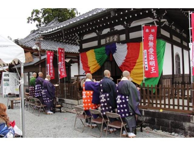 金峯山寺境内にある愛染堂に祀られている愛染明王さまの年1回の大祭が、毎年11月27日に執り行われます。愛染明王御宝前において、採灯護摩供が修法されます。ご祈祷や、護摩木の申込みもできます。