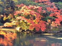 広大な大名庭園が鮮やかな秋色に染まり、訪れる人をやさしく包み込んでくれます。