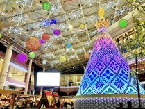 - 鹿児島の伝統工芸品「薩摩切子」をデザインした光の塔や 麻格子の天井照明など、伝統と融合したイルミネーションです。
