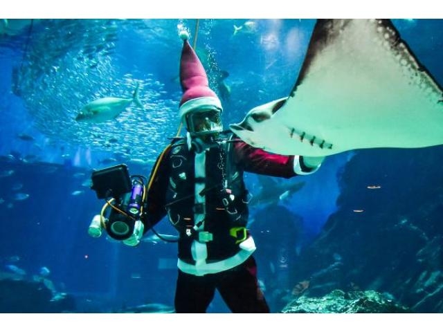 “九州の海”をテーマに海の生きものを展示するマリンワールド海の中道で、クリスマス気分を盛り上げるイベントが開催されます。サンタダイバーが水槽に潜るダイバーショーが行われるほか、2日間限定で営業時間が21時まで延長され、ロマンチックな夜の水族館が楽しめます。24日と25日は「うみのクリスマスナイト」も行われます。