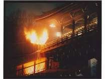 夜になると二月堂の舞台から松明(たいまつ)が上げられ、