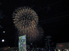 お祭りの露店が海岸沿いの道に延々と続き、ものすごい数の人出で会場はごった返し、大盛況の花火大会でした。