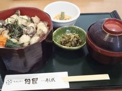 昨年の9月にはらこめしを食べに行こうとしたら、順番待ちの人が多すぎてあきらめたので、今回はかきめしとほっきめしを食べたくて、近くにいちご狩りに行く前に行きました。12時前に行ったのですが、結構待ってる人がいました。はらこめしの時よりは少なかったですが…。2人で半分ずつしましたがどちらもとても美味しかったです。単品でカキフライも頼んでお腹いっぱいになりました。また、行きたいです。