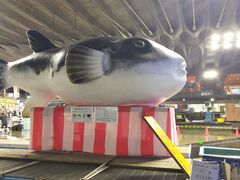 平日朝に市場2階の食堂利用で訪れました。フグのモニュメントがある場内は、セリが終わり片付作業の仲卸が忙しそうでした。2軒営業していた食堂のメニューには食指が湧かず、1階の林すし店で稲荷と巻き寿司のパックを購入。箸をつけて貰い、ホテルの部屋で朝食にしました。場内ではふくのセット発送と、塩干土産をリーズナブルにゲット出来ました。
