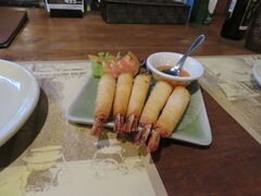 タイ人が作る本格的なタイ北部料理のレストランですが、意外と日本人好みの味でとても美味しいです。この時は、パパイヤサラダ、鶏肉とレモングラスの炒め物、焼き三元豚豚の唐辛子ソース、揚げ海老春巻き、カレー、デザートなど妻とシェアーましたがお腹いっぱいになりました。、どれも美味しく、まだまだ食べたいメニューが沢山ありました。