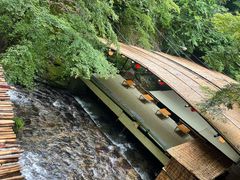 川床で懐石料理をいただきました。道路から川床に降りる階段中ほどで、空気が変わり、涼しく贅沢な空間がひろがります。お料理もおいしくて量も十分あり満足でした。