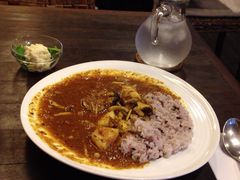喫茶店のような外観のカレー屋さん 南船場にある喫茶店のような外観のカレー屋さん。花カレーと赤キーマのあいがけを注文しました。花カレーはコラーゲンたっぷりの豚軟骨ときのこ入りのこのお店の看板メニュー。赤キーマは確かに辛さはありますが、フルーツや肉のうまみも凝縮されており決して辛いだけではありません。ランチ時はポテトサラダとヨーグルト付きが嬉しい。女性一人でも入りやすい雰囲気です。 詳細情報をみる - 行った時期:2017年5月