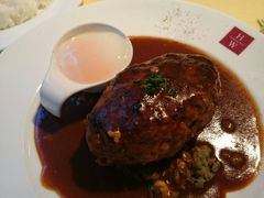 行列賀できる人気のハンバーグ屋さん。ランチにいきました。チーズ入りのハンバーグに卵がからんで美味しいハンバーグでした。