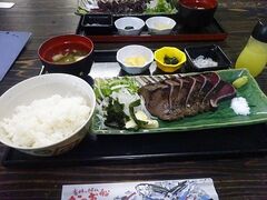 カツオを自分で焼ける体験です。鉄串にカツオの固まりが刺さっていて、それを藁で焼きます。炎が最長2メートルくらいまで上がりますので見ていても楽しいです。まるで生臭くなく藁で焼いた香ばしい匂いがします。おじさんにポン酢ならどこでも食べられるから塩かワサビで食べるように言われましたが、本当にその通りでした。自分は定食にせずにタタキのみを食しましたが固まりが大きいので、一切れずつの食べ応えがありました。
