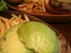 店内は満席だったのでテイクアウトで利用しました。アメリカサイズのボリュームたっぷりなバーガーです。ビーフ100%のパティはジューシーで付け合せのポテトもとてもおいしくて大満足でした。おすすめのショップです。