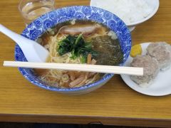 写真はラーメン中盛(400円)とライス、シュウマイ2コ(200円)のまる徳セットです。