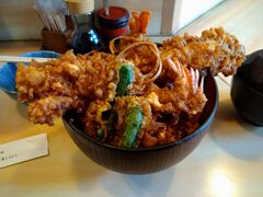 肝心の料理ですが、エビ穴子天丼をいただきました。濃いめのつゆがかかっていましたが、下のご飯にはビタビタではなく、ほんのりかかる具合で、ちょうどいい量でした。でも、ここら近辺の味付けなのかもしれませんが、少し濃すぎて、食べ始めは美味しくいただけましたが、だんだんとしつこさに飽きてきますね。よく関西の方が、関東のうどんは汁が濃すぎて、しょっぱいって言いますが、こんな気分なのかなあ。『これが江戸前でぃ』ってことですかね。詳細情報をみる