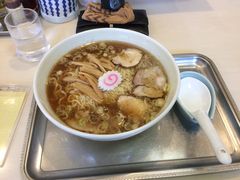 京王井の頭線の永福町駅の目の前にあります。中華麺を注文しましたが、食べきれないほどの麺の量です。スープは煮干しの風味が広がり、素朴ながら食べ飽きない味です。また、スープにラード(脂分)を加えることで熱が逃げにくく、最後まで熱々のスープで麺を食べることができました。