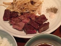 カウンターに座り、目の前で焼いてもらいます。ステーキや魚介などの鉄板焼きがあり、特にステーキが美味しかったです。ランチでしたが、満足感たっぷりの食事ができました。