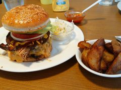 ボリューミーなハンバーガーで有名なお店でお肉もジューシーでかなり食べ応えがあります。ランチタイムはお客さんも多いです。