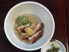 うなぎはたれで焼かれるものと思っていましたがうなぎ屋さん巡りをしていると白焼きと言うものの存在が最近気になりだしていました。ついつい迷いつつもうな重うな丼と言ってしまう。白焼きはこれだと舌に記憶させたくて白焼きデビューするなら尾花さんでと今回訪れました。少々小骨を感じながらも溶けてなくなる うなぎ溶けながらも噛めば噛むほどうまみが口の中に広がる醤油とワサビで頂く白焼き最高でした。これからは白焼き巡りもしてみたくなりました。