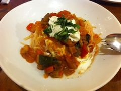 冷製パスタをいただきました。野菜がゴロゴロ入って、見た目もとても綺麗でした。パスタもチーズクリームとマッチしていて美味しかったです。