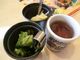 卓上のお漬け物、キャベツとご飯、お味噌汁がお替わり可のとんかつ屋さん。