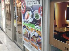 大阪梅田のJRの高架下、新梅田食堂街1Fにある飲み屋さんです。お昼はランチを提供しております。海鮮丼もおすすめなのですが、チキンカツをチョイス。デミグラスソースがチキンとよくありますね。ご飯もお替り無料です。