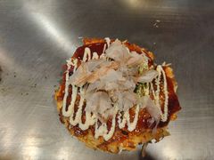 豚玉、白米、味噌汁、漬物で600円でした。コスパがよく、お好み焼きの生地にも味が付いている感じで、最後まで美味しくいただけました。ボリュームがすごいです。