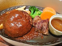 土曜お昼12時すぎに訪れましたが店内混雑。「2種チーズのダブルハンバーグステーキセット」を注文。ソースは4種から選べるとのことで洋風ワサビソースで注文。美味しくいただきました。