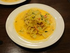 ランチのパスタとサラダ、飲み物はフリードリンクでお代わりできたので