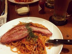 ノースポート向かいにあるお店。ノースポートの帰りに歩いていて、たまたま見つけたお店でした。日本ナポリタン学会認定第1号と掲げられていました。どうやら、ナポリタン推しのよう。”びっくりベーコンナポリタン”このネーミングに惹かれ注文。出てきたのがまたすごい。大きなベーコンがどーんと乗っかったナポリタン。とても美味しかったです。お店も平日夜なのか、比較的空いていてゆっくり過ごせました。ビールとの相性もバッチリ。また絶対行きます。