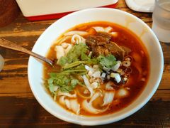 定番、牛肉がごろっとのった刀削麺はは柔らかくておいしいです。種類もいろいろありボリューム満点、辛くないものもあります。