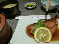 小田原駅の直ぐ近くです。平日のランチタイムは焼き魚、煮魚、フライからその日旬の魚を選んで日替わり定食が食べられます。自分はハマチの煮魚定食を頼みました。甘辛いタレがおいしく、ハマチもジューシでおいしかったです。この日替わり定食は全部880円です。味噌汁はシジミが入っていて、シジミのダシが出ておいしかったです。