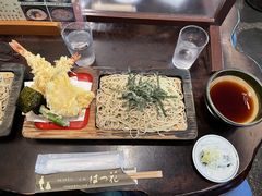 箱根の湯本でランチに困ったときは立ち寄る、いつも行列ができるお蕎麦屋です。店頭の名簿に10数組待ちで行列ができていましたが、名前が呼ばれた時にいないと、容赦なく予約が取り消されるルールなので、長い行列なのに30分も立たずに店内に入れました。店頭で名前を書いて予約することも知らないまま並んでいる人もいるのではと思います。回転が速く、割と早く品も出てきます。天ざるでしたが、あつあつの天ぷらとすっきりしたそばが旅行で胃も疲れたときにちょうど合います。