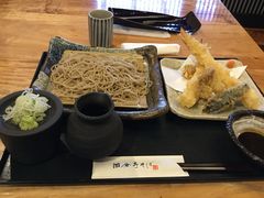 親戚の葬儀で訪れた海老名。初めて海老名駅に降り立ったのでお店が全然わからず…葬儀場からのバスを途中下車し、ランチに良さげなお店を急遽ネットで探しました。近くのリストランテ?と迷いましたが、今回は1人だったのでさくっとお蕎麦へ。ランチ時間には少し早かったせいか、並ぶことなくすっと入店出来てラッキーでした。お店を出る頃には結構並んでいたので早目に行くか時間をずらした方が良さそうです。天せいろを注文しましたが、天ぷらも蕎麦も美味しく、コストパフォーマンスは良いと感じました。お店の方もとても感じよく、満足です。蕎麦好きの家族にもお土産をと思い、蕎麦とつゆを購入。後日自宅で茹でる蕎麦も美味しく、家族にも好評でした。駅から少し離れているので、車で行く方が良いのかなと思います。近くに行くことがあったら、是非また伺いたいです。