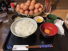 テレビでも紹介された行列ができる卵かけごはんの店、やっと行く事ができました。ちょうど到着したのが12時前でしたが、待つこと1時間15分ぐらい。ご飯大盛を頼みました。おなかがかなり減っていた事もあり卵4つ食べましたが、向いの方は5,6個食べておられました。一度は食べてみたい店です。