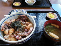 お昼時には行列ができる有名店です。エビフライ定食やさわらのたたき定食など様々なメニューがありますが、タコ天丼が揚げたてでとても美味しいかったです。子連れで行きましたが、持ち込みの離乳食を温めてくださるサービスは有難かったです。