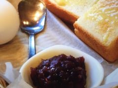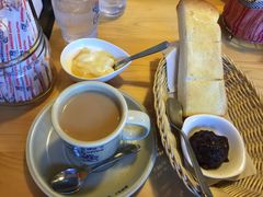 コメダの選べるモーニングが気に入っています。カフェオレに、名古屋名物小倉あんとトーストをチョイス。別料金でヨーグルトをつけました。