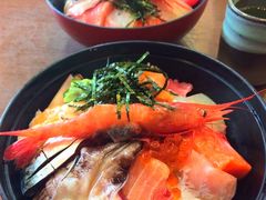 名古屋中央卸売市場内にある有名な食堂で、午前中は市場で働く方たちで朝早くからずっとにぎわっています。刺身や魚料理には、はずれがありません。値段も安い。信じられないくらいたくさんの刺身がのった海鮮丼はとくに人気で、11時前にはもう売り切れていることが多いです。