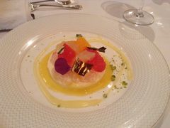 オードブル「スモークサーモンのミモザ風 シャンパンヴィネグレットソース」
