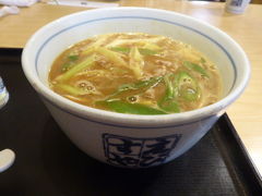 きしめんをいただきました。麺はもちもち感が強く大変おいしくいただきました。つゆは削りぶしもタップリで良い香りでしたが、やはり醤油が濃いめ。大阪うどんのように、飲みほすことはできませんでした。