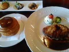 少しパン粉の付いたジューシーカリカリハンバーグは美味しいです。セットで付いてくるパンがほんのり甘くデニッシュぽくていい感じした。カニクリームコロッケもとても美味しかったのですが、レディース用は小さめなので、たくさん食べたい方はレギュラー版を注文するといいと思います。