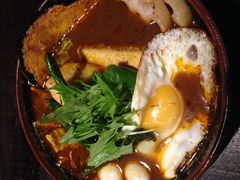 ボリューム満点でいつも行列が出来る人気店です。店内は薄暗くて落ち着いた雰囲気です。どのスープカレーも野菜が盛り沢山です。注文したのはタフゴレンという大きな揚げ出し豆腐が2つ入ったものです。意外な組み合わせですが、スープカレーに浸った揚げ出しがとっても合います。ライスやスープの大盛りも値段が変わらないのがこのお店の凄いところです。ただスープは大盛りにしなくても十分なボリュームでした。目玉焼きをトッピングしましたが、うずらのたまごが入っていたので、トッピングしなくてもよかったなと後から思いました。