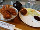 けっこう待って、ようやくありついた有名店のお食事は期待しかなかったんですが、出てきた料理「デラックス海老丼(メンチカツ)」のビジュアルに、唖然。