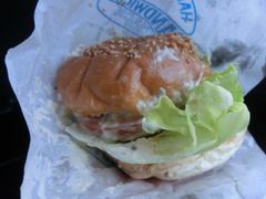 ホタテバーガーやサケフライバーガーなど魚介類をメインにした、珍しいけれど美味しいハンバーガーがたくさん売られています。ホタテバーガー、思った以上に美味しかったです。