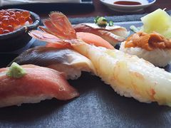 小樽運河の目の前に店を構えているので、行く度に混んでいて入れなかったのですが、平日の開店直後に行ったらすんなり入れました!通されたのは小樽運河を見渡せる席。贅沢に大トロやぼたん海老などの3500円ほどのセットを2つ頼みました。新鮮で甘くて美味しい!追加で天ぷらと茶碗蒸しも注文。天ぷらはサクサク、茶碗蒸しは蟹餡かけが美味しい!お酒も頼んだので会計は一万を越えてしまいました…。でも前から来たかったお店で美味しくいただけたので満足です。カウンター席はVIPの人でないと通してくれないのかしら?カウンターで食べてみたいですね。