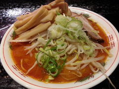 北海道に来たので味噌ラーメンを食べによし乃さんへ。オーダーは辛味噌ラーメンをチョイス。スタンダードな味噌ラーメンはモヤシと玉ねぎ、ひき肉を炒めたものが麺の上に乗っかっていますが、ここはチャーシューがついています。聞けば札幌店はフランチャイズ営業しており、旭川本店とは若干違うとの事。ガツンと味噌が前面にでる濃いスープに負けないコシが強い麺。大量のモヤシと玉ねぎで全体的にバランスが取れ美味しかった。