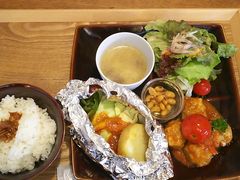 日替わりランチを食べました。待ってる間、店内に置いてある雑貨などをみて待ちました。野菜もたくさん使われていて、ボリュームもバッチリで美味しかったです。