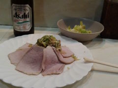 土曜の夜に函館での仕事が終わり、この時間にラーメンが食べられる店・・・ということで久しぶりに訪問しました。以前から気になっていたものの、800円という値段で躊躇していたチャーシューをビールとともに頼んだところ、大当たり!脂身の少ない肉は味わい深くて柔らかく、たっぷりのモヤシと、ピリ辛だれで和えたネギの付いた一皿は、高級な中華の前菜でした。いつもの味噌ラーメンに代えて、中華メンを頼んでみましたが、塩味のスープに生姜の効いた中華丼風のあんかけが乗り、何とも温まる一品。〆のおじやまで美味しくいただけました。店内禁煙ではないのが残念。