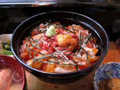 牛とろが食べたい。と思って行ってきました。今回はランチタイムメニューの牛とろ海鮮丼(1000円)を注文。海鮮メインで牛とろは味見程度の量だったのですが、口に含むと溶けていく感じが良かったです。一人で行ったのですが、女将さんも大将も気さくな方で、色んなおしゃべりをしながら楽しいひとときを過ごすことができました。