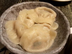 必ず水ギョーザを頼みます。モチモチの皮に包まれた、しっかりした小籠包って感じで口の中に餡のスープが、ジュワッと広がります。青野菜を炒めたものも優しい味でおいしいです。