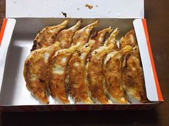 年末近い土曜17時頃に自転車で訪れました。TVや雑誌に何度も紹介されいる有名店ですが、訪れたのは初めてでした。店内は満席近い混雑ですが、テイクアウト用の窓口は入口横にありました。家族分の焼き餃子を購入し自宅で食べましたが、おいしかったです。