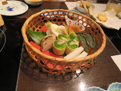友人夫婦が京都旅行に来たので、一日京都観光に付き合って最後、駅の近くでディナーをして解散しました。京都らしいものを食べたいと言ったので、くずし京野菜料理コースを事前に予約しましたが、友人も気に入ってくれました。値段も手ごろでいろいろ楽しめて美味しかったです。