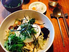 比較的年配の方のお一人客が多く、落ち着いてゆったりとした雰囲気です。ランチのビビンパ、美味しくいただきました。温かみのあるうつわがとても素敵で、ほしくなりました。(店内で販売もされています。)